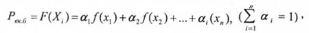 де х1,х2,… хn — основні показники діяльності підприємства; ƒ(х1),ƒ(х2),… ƒ(хn) — локальні функції залежності рівня економічної безпеки від відповідних показників діяльності підприємства; α1,α2,..αn — частка значущості кожного показника для економічної безпеки підприємства; і — кількість показників. Щоб вивести функцію рівня економічної безпеки підприємства, розглянемо її залежність від одного показника — ƒ(хі) при незмінних значеннях решти показників. Значення показника рівня економічної безпеки підприємства мають розташовуватись у загальноприйнятій декартовій системі координат: по осі абсцис — значення аргументу, по осі ординат — значення функції. Над віссю абсцис X розташовується дільниця економічної безпеки, максимальне значення її рівня становить 1. Під віссю абсцис X розташовується дільниця економічної небезпеки, мінімальне значення її рівня становить — 1. У реальному житті не існує абсолютної захищеності (а також абсолютної небезпеки), тому рівень економічної безпеки (так само як і рівень економічної небезпеки) ніколи не досягне свого максимального (мінімального) значення, нескінченно наближаючись до нього. Значення показника х, є додатним. Графік функції перетинає вісь X у критичній точці хкр Це гранична точка між дільницями економічної небезпеки і безпеки, в якій рівень економічної безпеки підприємства дорівнює 0. Функція є зростаючою або спадною, залежно від типу показника. Можна виділити три типи економічних показників: показник — "мінімум", показник — "максимум" і показник — "інтервал". Для показника першого типу критичне значення мінімально можливе для досягнення економічної безпеки (при х > хкр і Рек.б> 0), представником є продуктивність праці. Для другого типу показників, навпаки, коли х> хкр і Рек.б < 0, представником є коефіцієнт спрацювання основних виробничих фондів. Для третього типу показників функція економічної безпеки підприємства стає додатною лише при значеннях аргументу, що лежать у межах певного інтервалу, представником може слугувати частка фонду оплати праці у витратах підприємства на виробництво продукції (робіт, послуг). Коли його значення є меншим від 20 і більшим від 70 %, існує небезпека для діяльності підприємства. В інтервалі між критичними значеннями аргументу хкр1 та хкр2 показника третього типу значення функції лишається сталим і найвищим, рівним 1 — α, де α — нескінченно мала величина. Крива першого типу зростає до значення 1 - α у точці х = хmax, відповідній максимально можливому реальному значенню показника, яке є найліпшим для досягнення економічної безпеки. У подальшому крива асимптотично наближається до 1. Крива другого типу убуває до значення -1 + а у точці х = *тах, що відповідає максимально можливому реальному значенню показника, яке є найгіршим для досягнення економічної безпеки. У подальшому крива асимптотично наближається до -1. Аналогічно поводиться функція залежно від показника третього типу. За основу формули цієї залежності від показника — мінімуму приймають формулу функції показникового закону розподілу неперервної випадкової величини: