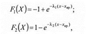 Графік цієї функції мас вигляд кривої, що асимптотично наближається до 1. Виконавши перетворення формули, необхідні для перенесення початку графіка у точку х, а також для описання лівої (від'ємної) гілки графіка функції, яка залежить від показника — "мінімуму", можна отримати:
