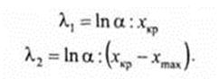 Рис. 26.1. Графік залежності рівня економічної безпеки підприємства від показника — "мінімуму" Величини λ1 і λ2 визначаються логарифмуванням рівнянь лівої та правої гілок кривої у точках (0; -1 + α) і (xmах; 1 - α), відповідно;