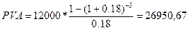 Найдем современную стоимость с помощью коэффициентов приведения (приложение Ж) PVA = 12000* в) непрерывное начисление процентов