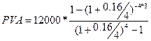 Найдем современную стоимость, используя финансовые таблицы для нахождения коэффициента приведения ренты (приложение Ж) PVA =12000*2,24589=26950,67 грн. б) проценты начисляются ежеквартально