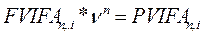 Между современной величиной и наращенной суммой ренты существует определенная зависимость: Пусть PVA - современная величина годовой ренты постнумерандо, FVA - ее наращенная стоимость к концу срока n, p=1, m=1. Покажем, что наращение процентов на сумму PVA за n лет дает сумму, равную FVA: