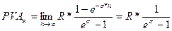 в) Вечная рента с непрерывным начислением процентов. Формула современной стоимости обычной ренты с непрерывным начислением процентов: