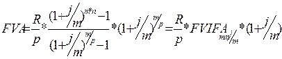 Пример 4. Фирма создает резервный фонд в форме банковского депозитного вклада. Для этого в начале каждого месяца на протяжении 2-х лет вносится по 1000 грн. Банк начисляет проценты ежемесячно по сложной процентной ставке 20 % годовых. Определить размер фонда в конце срока операции. Решение: Размещение денег на депозитном вкладе в начале каждого месяца и с ежемесячным начислением процентов рассматривается как p-срочная рента пренумерандо, причем m=p, размер фонда в конце срока операции – наращенная сумма данной ренты, формула которой следующая: