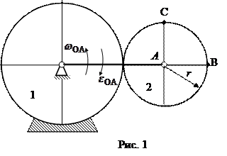 Задача 2. Дано: схема механізму в заданому положенні (рис.1); колесо 1 нерухоме; колесо 2 котиться без ковзання; ОА =30 см, r=10 см,