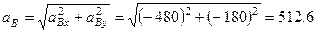 Прискорення точки В знаходимо способом проекцій. Спроектуємо векторну рівність (1) на осі х і у (рис.2):