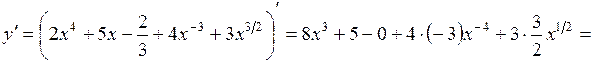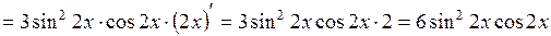 Здесь сначала взята производная степенной функции с основанием , затем производная синуса и на последнем этапе производная его аргумента. Нет необходимости расписывать все эти действия подробно, результат можно записать сразу, т.е. .