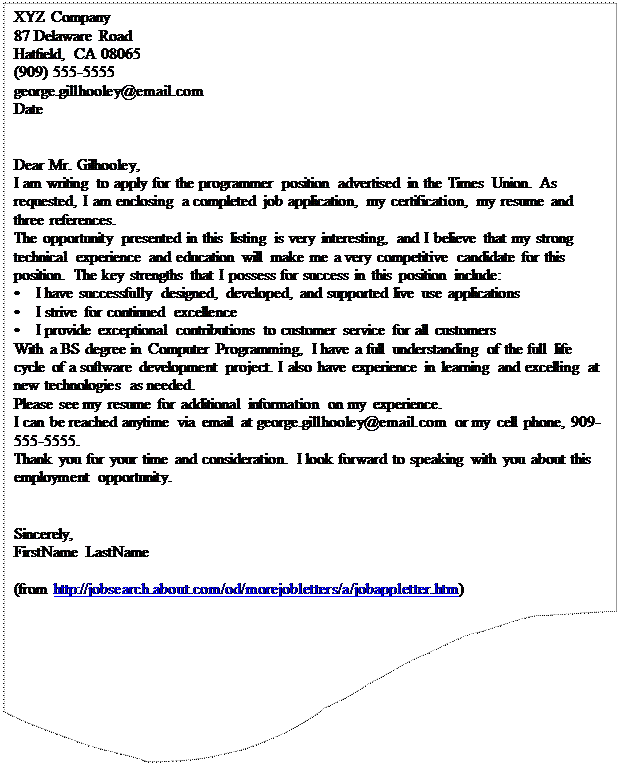 Sample of letter of application