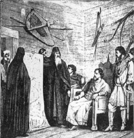 Князь отправил послов в разные страны, чтобы более основательно познакомиться с существовавшими религиями. Они вернулись и поведали, что нигде не встречали такого величественного богослужения, как у греков.