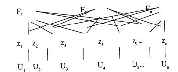 Схема 3 Соотношения между наблюдаемыми признаками и латентными факторами: общими (F) и специфическими (U)