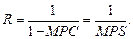 Мультипликатор K есть коэффициент, на который надо умножить первоначальные инвестиции, чтобы узнать, на сколько увеличится объем национального дохода. На основе первоначального инвестиционного расхода возникает цепочка последовательных потребительских расходов, что предполагает необходимость увеличения производства национального продукта. Допустим, первоначальные инвестиции составляют 200 тыс. ден. ед. Расходы на приобретение инвестиционных товаров образуют доходы для производителей этих товаров. Пусть полученный доход в 200 тыс. ден. ед. они будут расходовать в следующей пропорции: 0,8 – на потребление; 0,2 – на сбережения. Это означает, что на потребление пойдет 160 тыс. ден. ед., а на сбережения – 40 тыс. На 160 тыс. ден. ед. будут приобретены потребительские товары. Продавцы этих товаров полученный доход в 160 тыс. ден. ед. будут использовать так: 128 тыс. на потребление; 32 тыс. – на сбережения. Расчет использования полученных доходов на потребление можно представить следующим образом: 200 тыс. ден. ед. дохода ® 200 × 0,8 (потребление); 160 тыс. ден. ед. дохода ® 160 × 0,8 (потребление) или 200 × 0,82; 128 тыс. ден. ед. дохода ® 128×0,8 (потребление) или 200 × 0,83 и т.д. Процесс будет продолжаться до тех пор, пока средства, расходуемые на потребление, не приблизятся к нулевой отметке. Первоначальные инвестиции вызывают цепную реакцию вторичных потребительских расходов. На каждом этапе сумма дохода, расходуемого на потребление, будет уменьшаться в связи с вычетами на сбережения. Чем больше предельная склонность к потреблению (следовательно, чем меньше предельная склонность к сбережению), тем больше будет величина мультипликатора. Мультипликатор обратно пропорционален предельной склонности к сбережению. Так как MPC + MPS = 1, то MPS = 1 –