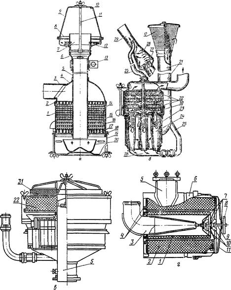 Рис. 101. Комбинированные воздухоочистители дизелей Д-240, СМД-14 и СМД-60