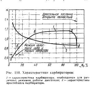 Таким образом, простейший карбюратор при этих режимах дает из- менение состава смеси, обратное тому, которое требуется.