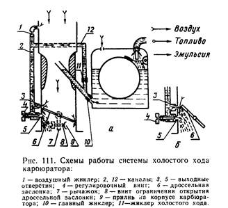 1) система холостого хода — устройство для работы двигателя на холостом ходу и с малыми нагрузками;