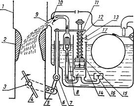Распылитель 9 — это трубка, сообщающая диффузор 8 с поплавко- вой камерой 2.