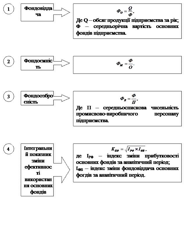 Ефективність використання основних фондів характеризується рядом показників, які поділяються на загальні та часткові. Загальні показники ефективності використання основних фондів: