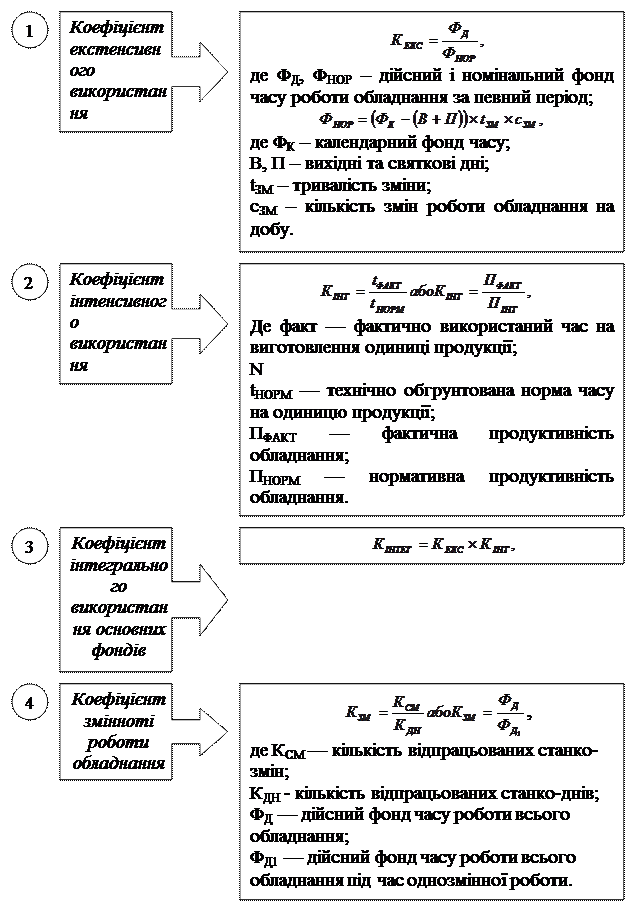 2. Коефіцієнт інтенсивного використання устаткування розраховується за формулою: