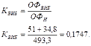 2. Вартість основних фондів на кінець аналізованого періоду: Фк = 493,3 + 65,1 - 51,0 - 34,8 = 472,6 тис. грн. 3. Коефіцієнт вводу основних фондів: