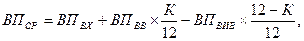 де ОФн — вартість основних фондів на початок періоду; ОФвв — вартість введених основних фондів; Твв — кількість місяців до кінця року, протягом яких функціонують основні фонди; ОФвиб — вартість вибулих основних фондів; Твиб — кількість місяців до кінця року з моменту виведення з експлуатації основних фондів.