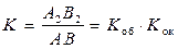 Оптическая схема микроскопа состоит из двух частей (Рис.18.1): объектива (Об.) - системы линз, которая предназначена для ослабления сферической и хроматической аберрации и обращенной к предмету и окуляра (Ок.) - системы линз (обычно двух), обращенной к наблюдателю. На рис.18.1 показана оптическая схема и построение изображения предмета в микроскопе. При построении изображения в микроскопе необходимо придерживаться следующего плана построения, номера которого соответствуют номерам в скобках на рис.18.1: 1. рисуем главную оптическую ось - номер (1); 2. ставим линзу – объектив Об. – номер (2); 3. отмечаем фокусы объектива F об на равном расстоянии от линзы с двух сторон – номер (3); 4. помещаем предмет АВ перед фокусом объектива – номер (4); 5. проводим луч (5) от вершины предмета В сначала параллельно главной оптической оси до линзы, а затем после преломления в линзе, ведем его через фокус объектива; 6. проводим луч (6) от вершины предмета В через оптический центр объектива, такие лучи не преломляются. Ведем его до пересечения с лучом (5); 7. строим промежуточное изображение А 1 В 1 – номер (7). Изображение, которое дает объектив, получается увеличенным, перевернутым и действительным; 8. правее полученного изображения А 1 В 1 ставим окуляр Ок. – номер (8); 9. находим фокус окуляра F ок так, чтобы полученное промежуточное изображение А 1 В 1 оказалось между фокусом окуляра и самим окуляром. Считаем клеточки, т.е. на каком расстоянии оказался фокус от окуляра слева. На таком же расстоянии справа от окуляра отмечаем второй фокус окуляра – номер (9); 10. от вершины промежуточного изображения В 1 проводим луч (10) через оптический центр линзы, не преломляясь; 11. от вершины промежуточного изображения В 1 проводим луч (11) сначала параллельно главной оптической оси до линзы, а затем через фокус окуляра. Мы видим, что лучи (10) и (11) расходятся. Тогда продолжаем лучи (10) и (11) в обратную сторону до их пересечения; 12. в месте пересечения лучей строим окончательное изображение А 2 В 2 - номер (12). Т.е., окуляр дает увеличенное, прямое (не перевернутое) и мнимое изображение; Таким образом, микроскоп в целом дает увеличенное, перевернутое и мнимое изображение. Микроскоп характеризуется величинами: L - оптическая длина тубуса микроскопа (тубусное расстояние, равное расстоянию между внутренними фокусами окуляра и объектива); S - расстояние наилучшей видимости (расстояние от окуляра до полученного изображения и приблизительно равное 0,25м). Используя приведенные обозначения, можно записать увеличение микроскопа, которое показывает во сколько раз размер изображения больше размера предмета, как: или, исходя из выражения (18.1), увеличение микроскопа равно произведению увеличения объектива на увеличение окуляра. Но увеличения объектива и окуляра вычисляются по формулам: