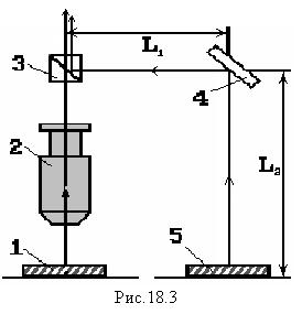 Такая система зеркал позволяет совместить изображение предмета в микроскопе с изображением измерительной линейки, т.е. оценить по размеру изображения линейки размер изображения предмета. Тогда увеличение микроскопа: (3) где: L1 - длина изображения линейки; L2 -длина изображения предмета (сетки Горяева). В свою очередь, длина изображения линейки L1 равна произведению цены деления линейки А1 на число делений линейки N1, а длина L2 изображения сетки равна произведению цены деления сетки А2 (размера малого квадрата сетки, равного А2=0,05 мм) на число квадратов N2 . Тогда формула (3) для экспериментального определения увеличения микроскопа примет вид:
