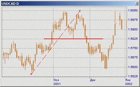 Рис.4.4.4. Фигура «двойное дно» Способ измерения по этому патерну основания (ещё его называют двойным дном) аналогичны, лишь высота патерна (ширина коридора) откладывается в противоположном направлении.