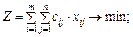 де хij — кількість продукції, що перевозиться від і -го постачальника до j -го споживача; сij — вартість перевезення одиниці продукції від і -го постачальника до j -го споживача; аi — запаси продукції і -го постачальника; bj — попит на продукцію j -го споживача. Якщо в транспортній задачі загальна кількість продукції постачальників дорівнює загальному попиту всіх споживачів, тобто
