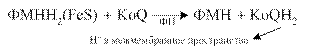 В последующем электроны с восстановленной формы флавопротеидов переносятся при участии железосеросодержащих белков (Fe-S комплексов) на следующий компонент: КоQ по схеме: