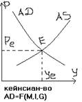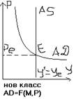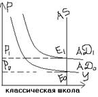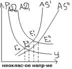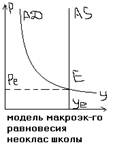 Неоклассическая школа трактует AD исходя из формулы коллич-ой теории денег. 1)MV=PY, M-кол-во денег, V-скорость оборота денеж-ой единицы, P-средний уровень цен, Y-объем нац-го произв-ва. 2)AD=C+I+G+Xn, С умен-ся, I умен-ся, 3)эффект импортных цен. Экспорт уменьш-ся, след-но AD уменьш-ся.(рис) P-общий уровень цен, Y-реальный ВНП