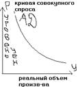 Кривая AD иллюстрирует изменение совокупного уровня всех расходов домашних хозяйств, бизнеса, правительства и заграницы в зависимости от изменения уровня цен. Характер этой кривой говорит о том, что при повышении уровня цен объем реального объема производства будет меньше и при снижении уровня цен объем реального ВНП будет больше. Отрицательный наклон кривой AD объясняется тремя важнейшими эффектами в рыночной экономике: 1.) эффектом процентной ставки (эффект Кейнса), 2.) эффектом реального богатства (эффект Пигу), 3.) эффектом импортных закупок. В первом случае, если повышается уровень цен, то при неизменном объеме денежной массы происходит повышение ставки процента. Чем выше ставка процента, тем ниже инвестиционный спрос, а также падает потребительский спрос за счет удорожания кредита. Во втором случае, при снижении цен на товары и услуги, реальная стоимость денег возрастает, потребители ощущают, что их богатство возрастает. Это поощряет их к увеличению расходов, спрос увеличивается. В третьем случае, при повышении цен на отечественные товары, покупатели предпочитают неподорожавшие импортные товары. Совокупный спрос на отечественные товары уменьшится. Существует несколько неценовых факторов, влияющих на потребительский спрос: 1.) Изменения в потребительских расходах (благосостояние потребителей, задолженность потребителя, налоги, ожидания потребителей), 2.) Изменения в инвестиционных расходах (процентная ставка, прибыли от инвестиций, налоги с предприятий), 3.) Изменения в государственных расходах, 4.) Изменения в расходах на чистый объем экспорта. Существуют факторы, приводящие к смещению кривой AD. Смещение вправо: увеличение денежной массы, инфляционные ожидания населения, увеличение государственных расходов. Смещение влево: рост налогов.