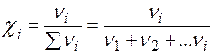 Молярная доля вещества, χi (доли или %): отношение числа молей одного из компонентов раствора (данного вещества) к сумме молей всех компонентов раствора.