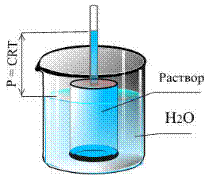 Молекулы растворителя диффундируют из растворителя в раствор из менее концентрированного раствора в более концентрированный, поэтому концентрированный раствор разбавляется, при этом увеличивается и высота его столба. Осмотическое давление (Р осм) - минимальное давление, которое нужно приложить к раствору, чтобы осмос не происходил При достижении равновесия Р осм = давлению столба раствора в осмометре