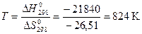 Пример 3. Определите температуру, при которой газовая коррозия изделия (пример 1) при стандартных условиях прекратится. Решение. С некоторыми допущениями температуру, при которой прекращается коррозия, найдем из уравнения: