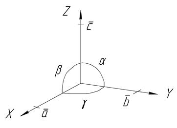 Рис. 3. Углы между кристаллографическими осями и отрезки, отсекаемые