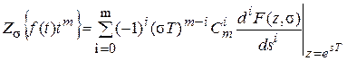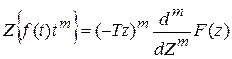6. Свойство изображения функции, умноженной на tm ( m – целое число) Это свойство имеет особое значение для дискретных систем, так как для непрерывных систем составлены подробнейшие таблицы соответствий функций и их изображений [6]. Для дискретных систем свойство формулируется отдельно для случаев s = 0 и s ¹ 0. Для s = 0 имеем