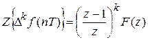 Частотные случаи последнего свойства: 1) m = +1; Т. е. Z -1 – оператор запаздывания на один период дискретности; 2) m = -1; Z – оператор опережения на один период дискретности. · Изображение производной (конечной разности) n -порядка Если Аналогично для Z -преобразования (приводим формулировку свойства для s = 0) взятию разности k -го порядка дискретной функции f (nT) соответствует умножение ее изображения на 2. Изображение интеграла (конечной суммы) функции-оригинала Свойства изменения изображений функции после ее интегрирования или взятия конечной суммы в дискретном варианте является “обратными” по отношению к свойствам дифференцирования или взятия конечных разностей: