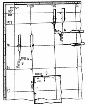 Рис. 38. Определение координат точки с помощью координатомера