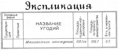 Вычерчивание и размещение ситуации на главном элементе (территории землепользования). Порядок вычерчивания плана тушью может быть принят следующим: вначале вычерчивают все объекты, которые изображаются на плане линейными условными знаками (координатную сетку, границы землепользования, населенных пунктов, участков постороннего пользования, дорожную сеть, гидрографию и другие элементы), затем производят надписи внутри границ землепользования. После этого оформляют контурным условным знаком границы сельскохозяйственных угодий с соответствующим пояснением, размещают предметы земной поверхности, изображаемые внемасштабным условным знаком. Границы землепользования, населенных пунктов и постороннего пользования вычерчивают линиями толщиной 0,15–0,2 мм. Места поворота этих границ показываются кружками диаметром 1,5 мм (для масштаба 1:10000). При вычерчивании линии границ должны точно проходить через наколы точек, нанесенных по координатам. Железные, шоссейные и грунтовые дороги, имеющие полосу отвода, топографическим условным знаком не показывают, а наносят линией, повороты ее границ обозначают кружками. Дороги, не имеющие полосы отвода, изображают условными знаками, принятыми в землеустройстве. Проселочные и полевые дороги (шириной больше 6 м) вычерчивают в масштабе плана двумя линиями, толщиной 0,15–0,2 мм. Полевые дороги, ширина которых на местности меньше 6 м, показывают двумя линиями – сплошной и пунктирной. Длина штрихов пунктира 2,0 мм, расстояние между ними 0,8 мм. Расстояние между условными знаками дорог и границ населенных пунктов установлено должно быть не меньше 0,2 мм. Условные знаки дорог вычерчивают рейсфедером или одинарной и двойной кривоножкой. Длину штрихов и промежутков при изображении полевых дорог и троп удобно наносить на:план с помощью трафарета. Насыпи и выемки на дорогах обозначают в соответствии с таблицами условных знаков. Гидрографию (реки, озера, каналы, канавы) вычерчивают линиями толщиной 0,15 мм синим или зеленым цветом. Береговые линии пересыхающих рек, озер, каналов и канав изображают пунктирными линиями. Реки, не выражающиеся в масштабе плана, показывают одной линией с постепенным утолщением от истока к устью. Гидрографические сооружения, мосты и переправы на плане землепользования вычерчивают без характеристик. Мосты всех видов вычерчивают условным знаком деревянного моста. Течение реки показывают стрелкой, ее длина зависит от масштаба плана. Перед вычерчиванием угодий следует разместить и вычертить надписи названий населенных пунктов и характеристик объектов по условным знакам. Названия населенных пунктов и характеристики объектов подписывают параллельно северной и южной рамкам. Названия рек, озер, каналов, оврагов подписывают вдоль изображения. После оформления надписей приступают к вычерчиванию сельскохозяйственных угодий площадными условными знаками. При изображении контура сельского населенного пункта обязательно показывают угодья площадью 1 га и выше, угодья постороннего пользования площадью 0,1 га, гидрографию, кварталы, которые заштриховывают через 2 мм, улицы и площади. Площади с постоянно избыточным увлажнением изображают условным знаком болот. Если граница увлажненной территории на местности ясно выражена, то на плане ее изображают точечным пунктиром и условным знако