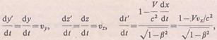 то связь междупроекциями скоростей точки на оси декартовых координат в систему отсчета К и К' имеет вид