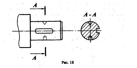 Однако можно заметить, что это относится к изображениям отверстий и углублений цилиндрической, конической и шарообразной формы и не распространяется на изображение в сечении шпоночного паза.