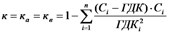 де к - коефіцієнт відповідності екологічним вимогам для атмосферного повітря або водного об'єкта; i – номер інгредієнта у викиді або скиданні; Сi – фактична концентрація i –го інгредієнта (речовини) у викиді або скиданні, мг/м3 або мг/л; ГДКi – гранично припустима концентрація відповідного інгредієнта для повітря населених місць у мг/м3 або води господарсько-питного призначення в мг/л. Коефіцієнт повноти використання ресурсів розраховується по формулі: