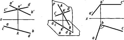 Если прямые пересекаются, то их одноименные проекции пересекаются между собой, а проекции точек пересечения лежат на одной линии связи.