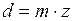 где n1 и n2 — частоты вращения колёс 1 и 2; d1 и d2 — начальные окружности зубчатых колёс 1 и 2, для стандартных зубчатых колёс их называют делительными окружностями; z1 и z2 — числа зубьев соответственно колёс 1 и 2. К параметрам эвольвентного зубчатого колеса относят также: модуль колеса m, шаг зубьев p, диаметр окружности выступов D1, диаметр окружности впадин D2; высоту зуба h; высоту головки зуба h1; высоту ножки зуба h2. Модулем зацепления m называется линейная величина в π раз меньшая окружного шага p. Модуль измеряется в миллиметрах, вычисляется по формуле: