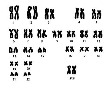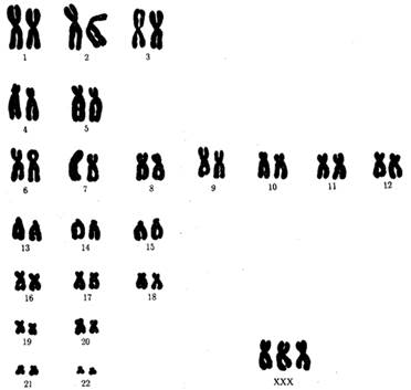 Мал 3. Каріотип жінки з синдромом трисомії Х-хромосоми.