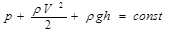 - это уравнение Бернулли. Слагаемые, входящие в уравнение Бернулли имеют размерность и смысл давления. Давление р называют статическим; оно не связано с движением жидкости и может быть измерено, например, манометром, перемещающимся вместе с жидкостью. Давление