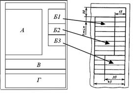 Схема размещения элементов детали и требований к её изготовлению дана на рис. 42. Поле А предназначено для изображения детали, указания ее размеров, границ световых зон, требований к качеству поверхности. При изображении оптических деталей и сборочных единиц номера поверхностей отдельных деталей считают по ходу луча слева направо. В правой части чертежа, в поле Б, размещают таблицу параметров, состоящую из трех частей. В части 1 указывают требования к материалу детали: допуски на отклонение показателя преломления, дисперсии, однородности материала, его показателя ослабления и т.д. В части 2 указывают требования к изготовлению детали – допуск на отклонения стрелки прогиба оптической поверхности, класс её чистоты и т.д. В части 3 указывают расчетные данные для детали: фокусное расстояние, вершинные отрезки для линз, длину хода луча для призм, световые диаметры поверхностей. Поле В предназначено для изложения сведений о типе и составе покрытий, отделке неоптических поверхностей детали. Поле Г отводится под основную надпись. В качестве примера рассмотрим чертежи двух наиболее часто встречающихся оптических деталей – линзы и призмы (рис. 43 и рис. 44).
