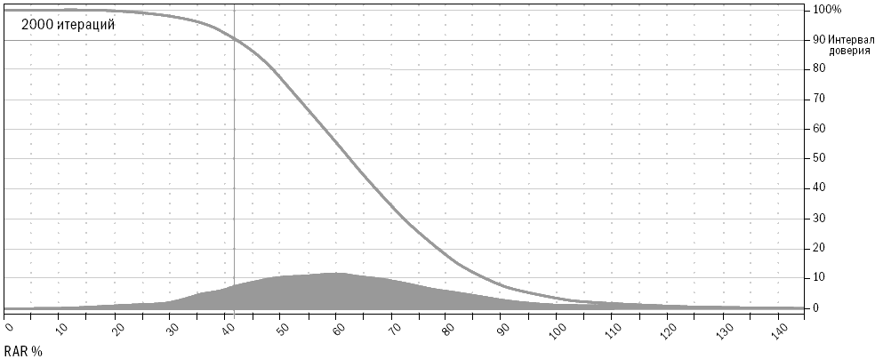Поведение рынков, которые формируются действиями тысяч людей, руководствующихся собственным опытом и мышлением, гораздо сложнее, чем чисто физические процессы расщепления атомов. К счастью, подобно Фейнману и его анализу, мы можем использовать случайные значения для лучшего понимания потенциальных характеристик системы трейдинга, хотя и не знаем, что может принести будущее. Мы можем изучить набор различных альтернативных ситуаций, вариантов развития событий в случае немного другого исходного состояния. Для создания таких альтернативных ситуаций в методе Монте-Карло используется один из двух способов: – Сделки вперемешку: порядок и начальные даты сделок перемешиваются случайным образом, а затем потери или доходы в процентах используются для корректировки размера капитала путем открытия новой сделки. – Кривая капитала вперемешку: выстраивание новых кривых капитала путем сбора случайных частей первоначальной кривой капитала. Если сравнить эти два метода, то кривая вперемешку позволяет строить более реалистичные кривые капитала, так как метод Монте-Карло с изменением очередности сделок может привести к недооценке величины падений. Периоды максимального истощения обязательно возникают в конце больших трендов или периодов быстрого роста капитала. В эти времена корреляция рынков вырастает по сравнению с обычными моментами. Это правдиво как для рынков ценных бумаг, так и для фьючерсов. В конце большого тренда, когда он прерывается и меняет направление, кажется, что все сразу начинает двигаться против тебя: даже рынки, прежде казавшиеся некоррелировавшими, становятся таковыми в волатильные дни прекращения большого тренда. Так как смешивание сделок устраняет связь между сделками и их датами, оно также устраняет эффект влияния на кривую капитала в случаях, когда многие сделки одновременно закрываются и меняются на противоположные. Это означает, что длительность и частота ваших периодов истощения при применении метода будут показаны меньшими, чем на самом деле. Возьмите, к примеру, изменения цен на золото и серебро весной 2006 года. Если бы вы тестировали систему следования тренду, работающую на этих рынках, то перемешивание сделок означало бы, что периоды истощения для этих рынков произошли в разное время, что существенно сократило бы эффект каждого отдельного падения. На самом деле этот эффект воздействовал на другие, на первый взгляд не связанные рынки, такие как рынок сахара: в тот же период, когда падали цены на золото и серебро (20 дней с середины мая по середину июня 2006 года), на рынке сахара также наблюдалось падение. Таким образом, смешивание сделок – неподходящий метод, так как он недооценивает уровни истощения, с которыми неизбежно сталкиваются трейдеры, использующие долгосрочные и среднесрочные системы. Другим примером такого рода служит однодневное падение на фондовом рынке США в 1987 году. В день, когда при открытии возник кризис на рынке евродолларов, я обнаружил, что аналогичная ситуация наблюдается и на других рынках, обычно не коррелирующих с евродолларами. Смешивание сделок по методу Монте-Карло обычно размывает эффект таких фактов, потому что разделяет сделки, проведенные в одном и том же направлении в одни и те же дни. Многие программные продукты, позволяющие делать расчеты по методу Монте-Карло, д