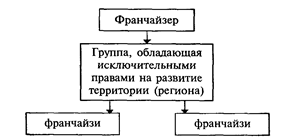 Возникшее многообразие вариантов франчайзинга отличается один от другого следующими моментами: • продолжительностью отношений франчайзера и франчайзи; • к кому франчайзи обращается за помощью; • кому франчайзи платит установленные взносы. Наряду с классической моделью франчайзинга получили развитие такие его варианты, как региональный франчайзинг (рис. 2.11) и развивающийся франчайзинг (рис. 2.12).