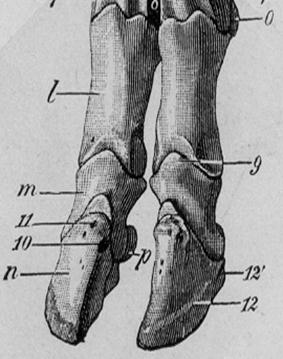 Рис. 16. Кости пальцев крупного рогатого скота с дорсальной поверхности (видны фрагменты пястных костей).