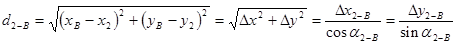 2.Определяют графические координаты точек А, В на топоплане xА, xВ, yА, yВ; 3.Уточняют координаты точки В с учетом d АВ = 72.000 м и приняв графические координаты точки А за аналитические (хА=ХА, yА=YА), ХВ = ХА + dАВ . cos aАВ, YВ = YА + dАВ . sin aАВ,